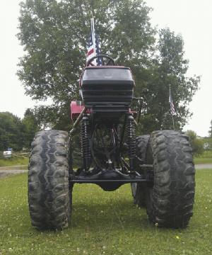 Folks can’t believe their eyes when they see this 4-WD “Monster Mower” garden tractor built by Tony Gernstl of Farmersville Station, N.Y. It rides on 44-in. high lugged wheels off a 4-WD “monster” pickup, with the driver sitting about 6 ft. off the ground.