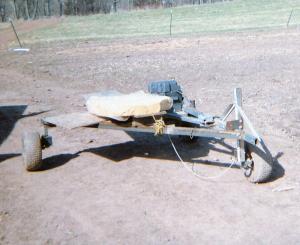 Tice first built a frame about 6 ft. wide and 6 ft. long from 1 in. square metal tubing. On one end of the platform he made supports where he mounted two wheels from an old garden tractor on a 1/2-in. drive shaft. The wheels are mounted wide enough apart to straddle a 6 ft. wide row of berries. On the front he has a single wheel for steering. The top of the platform is about 18 in. off the ground, so when Tice lays on it he can easily reach down and pick the berries.