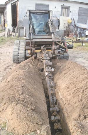 “I’ve used it for several years on my New Holland C190 skid loader with no problems. It makes a trench about 8 in. wide,” says Hardenburger. “I use it to do foundation work around buildings and to dig electric and water lines. I can trench going forward and have the entire operation in front, making it easy to operate.