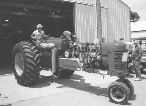 As he grew up on a Missouri crop farm in the 1960’s, Ron Strange dreamed of one day reconfiguring an old tractor with a V-8 automobile engine. Almost 30 years later, Ron bought a rusted out heap of metal that at one time was a chassis to a Farmall 400. Over the next nine months Ron and his brother Art dismantled, cleaned, fabricated and put together a specialty tractor they named “Big Red”. The name was chosen because, at 6,000 lbs., Red was really a stretched out and vastly reconfigured tractor from the original.