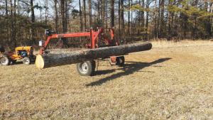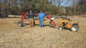 “We wanted to be able to carry a 24-ft. log, so we designed it so only about 10 ft. would extend forward from the arch,” explains Euart. “That balances the weight over the wheels on the arch, not on our garden tractor.”