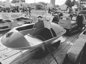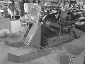 1964 Fox Trac 510 2-seater - Built by the Fox Body Corporation in Janesville, Wis., this model is powered by a 10 hp Kohler engine. “The Fox Trac was built during the 1960’s just as snowmobiles were making the transition from work to play machines,” says Thelemann. “It was made to go back in the woods and was used by farmers and trappers. It has steel tracks riding on no. 60 roller chain. The cleats are separated by pieces of canvas that provide flotation.