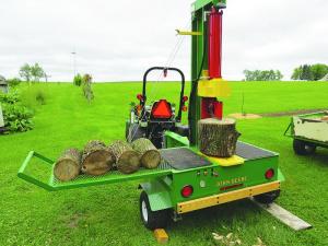 “The loading arm can easily pick up a 24-in. long, 24-in. dia. log,” says Hollmen. “I like to line up logs on the loading arm platform before I start splitting them so I can work faster.”