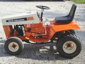 ATV-Garden Tractor Goes 50 Mph ATV S “When you meet a car on the road and are going 50 mph on a garden tractor you get some really weird looks ” says Mike Crutcher who built an “ATV garden tractor” by combining a 1972 Allis Chalmers 410 garden tractor with a 1993 Kawasaki Bayou 220 ATV The machine’s frame engine transmission suspension system rear wheels rear end and brakes are all from the ATV The seat steering box and body are from the tractor “It’s pretty much a Kawasaki ATV inside a tractor body I modified the 4-wheeler components to fit the tractor ” says Crutcher “Fitting the engine in was a big job I measured the tractor’s wheelbase then cut the ATV frame in half and lengthened it to fit the tractor’s body I also had to cut the sides out of the tractor body in order to make room for the engine “The gauges on the dash are only for looks I have right around 600 hrs of labor in it I built it because I wanted to do something different and just use it to run around town ” The 220 cc ATV engine has a 5-speed transmission with reverse which is operated by a Hurst car shifter located on one side of the operator platform The shifter is connected by a long metal rod to the transmission’s shift linkage The rear ATV wheels are fitted with sport racing dirt tires The front wheels and tires were designed for a small trailer Crutcher modified them to fit the ATV’s wheel hubs He made the brake pedal and throttle in his shop “It was a lot of work but I enjoyed doing it ” says Crutcher You can watch a a video of the machine by going on youtube and typing in “rabbid allis” “My thanks to Mike and Ace Adams for making the video ” says Crutcher Contact: FARM SHOW Followup Mike Crutcher 102 Magnolia Lane Cooksville Ill 61730 ph 309 838-3542; macmm55@gmail com