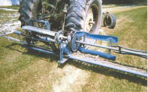 Gould designed the mower around a 20-ft. sickle bar and wobble box salvaged from an old combine. He made a frame to mount the mower to the 3-pt. hitch from 6-in. wide, 5/8-in. thick steel.