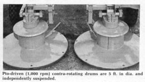 The Hay Boss features two 5 ft. contra-rotating drums that cut a 10 ft. swath and are independently suspended to stay close to the ground in all conditions. Cutting height, controlled hydraulically, is from ground level to 14 in. high.