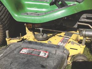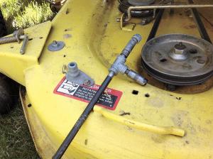 “The zerks on this deck’s 3 pulleys are difficult to get at, and using a flexible hose on my grease gun didn’t work very well. I made a 15-in. long straight pipe extension that works much better,” says Galde. “I also use the extension on my New Holland Boomer compact tractor equipped with a 72-in. belly-mount deck.”