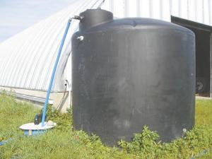 “First she ran 80 ft. of eavestrough along the base of the Quonset to collect all the runoff,” says her husband, Reid Allaway. “The water isn’t necessarily clean, depending on how often it rains, so a ‘first-flush’ diverter drains off a small amount of dust and dirt-filled water initially, then the remainder is collected.”