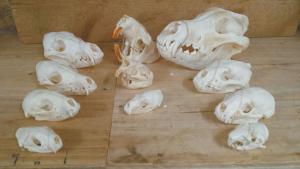 “The wolf, wolverine, fisher and lion skulls are especially hard to get,” Saltzman says.
