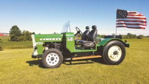 “We went to a junkyard and found a 1655 Oliver tractor and took the front end, hood and grill,” says Plagemann. “Stan made a platform to set the grill on and cut the hood a bit to fit it. He also made the cowling ahead of the dash where the steering comes through. We made the operator’s platform and installed bucket seats from an old Blazer.”