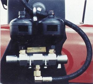 It consists of two accumulator units, connected together and designed to with-stand high pressure, that mount on the loader. A relief valve eliminates the possibility of blockading back pressure and thus balances out shocks.