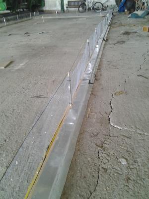 He started with 50 ft. of 2 ft. wide, 1/4-in. hardware cloth and 100 ft. of 8-in. wide metal flashing. He cut the hardware cloth in half to produce 100 ft. of fence. He laid a series of 10-ft. long 2 by 4’s together flat on the shed’s cement floor, then nailed them together to form a rectangle around the motorhome. He drilled holes about 10 ft. apart into the 2 by 4’s, inserted a series of 1-ft. high dowels in them, and then zip tied the hardware cloth to the dowels.