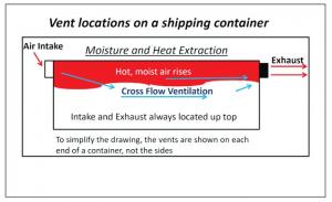 “We recommend 1 exhaust ($108) and 1 intake ($59) on a 20-ft. container and 2 exhausts and 1 intake on a 40-ft. container,” says Cravens. “Install the exhausts at floor level for fumes and gas extraction or ceiling height for moisture and heat control.”