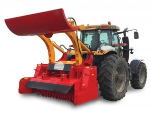 The Roto Crusher Super Mulcher model T- 200 has a working width of two metres (6.5 ft.) and a weight of 8360 lbs. It requires a tractor with 2275 - 350 HP, 1000 rpm PTO and a CVT transmission.