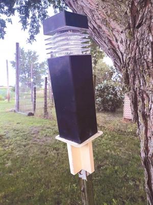 Iowa inventor and engineer Charles Aldrich created a T-Post platform designed to mount on top of metal T-posts. The platform makes it possible to securely attach sprinklers, birdhouses, birdfeeders, outdoor lights, cameras, solar panels and more to the top of a post.