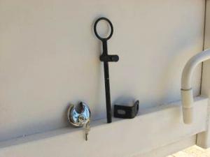 “We sell the padlocks separately,” Vernon says. “They’re solid, round padlocks built to be very awkward for a bolt cutter to bite through. People who’ve lost their keys say the only way they could get the lock off was to use a cutting torch.”