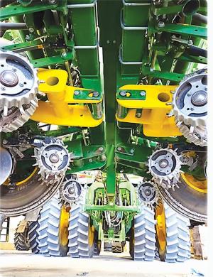 “When that happened, the computer would alert that there was a weight cell problem and no ground contact. The Terrace King arms improve that by about 95%. They restore up to 12 in. of row travel on terraced ground. When planting, they lift the wheels above the ground, but return them to a weight-bearing position when the planter is lifted. Even if the planter lifts partly out of the ground, it’s not out long enough to throw a code.