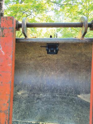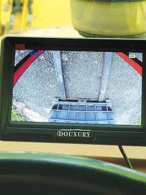 Larry Goodman had no good way to see the forks attached to the bucket of his backhoe. He purchased a wireless backup camera with a strong magnetic base and placed it inside the bucket, and placed the monitor on the windshield. It saves him from getting in and out of the cab when using the forks.