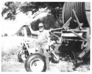 The "circle trip" device on the irrigator gun is tripped by a stake driven into the ground at the appropriate spot. It changes the gun's spray pattern to a half circle. The gun continues to make a half circle until the irrigator is pulled back far enough that it's tripped by the same stake and again makes a full circle without shooting any water out the end of the field.