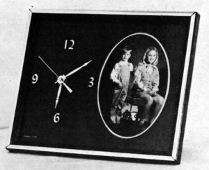 "A great gift idea," suggests Family Time Co., manufacturer of the new product. It's available in two basic models (oval or rectangular photo opening), two formats (horizontal or vertical), three colors (charcoal, cocoa brown or ivory) and an optional three-piece set with matching frames for wall mounting.