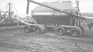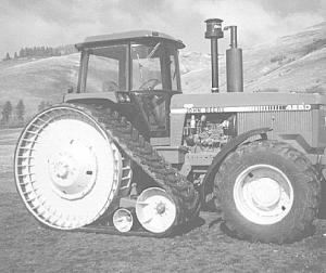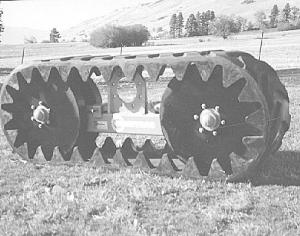 RC 7224 half track system consists of a pair of track frames, either friction drive or positive drive, for 30 to 200 hp 2 or 4-WD tractors. Widths of 15 to 36 in. Sells for $11,500 to $22,500 per pair.
