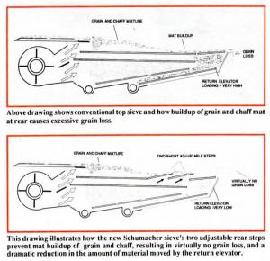 Revolutionary Combine Sieve Stops Grain Loss,Boosts Capacity 30% COMBINES Accessories 18-1-24 "We think it's one of the biggest improvers of combine performance ever developed," says Franz Greisbach, North American distributor of a revolutionary new combine top sieve that developers say almost totally eliminates grain loss out the back end, is virtually plug-proof, and boosts capacity of both conventional and rotary combines up to 30%.