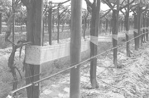 In vineyards the material is wrapped around stakes. In other crops it's placed around the perimeter of the field. The product remains effective until it's completely covered with insects or dust and debris. The 1,500-ft. long roll sells for $49.