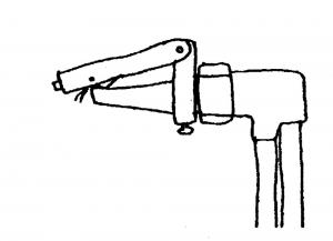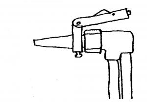 It mounts permanently on the end of the torch. The striker flops back and forth when the end of the torch flicked, sparking a flint that lights the torch.