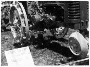 During the Wisconsin Farm Progress Days last July, Joe Joas, Kiel, Wis., mounted his 1944 Deere "A" 2-cyl. tractor on three old Coke bottles and ran the tractor constantly for three days. The wheels never touched the ground and he never broke a bottle. "I did it to recreate old advertising literature produced by Deere," says Joas, who shows antique tractors as a hobby and is a member of a local two cylinder tractor club. "In the late 1930's and early 1940's, manufacturers of 4-cyl. tractors started knocking Deere's `popping johnny' 2-cyl. tractors, claiming they ran rough. Deere counteracted by showing photos in advertising literature of a Deere "A" held up by three Coke bottles. This advertising literature is so rare I haven't been able to find any.