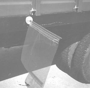 The 18-in. sq. flag mounts on a spring-steel "whip" connected to a 3-in. dia. magnet. The base of the whip is equipped with a 1-ft. long coil spring which allows the flag to "give" in the wind and also to flex up to 90 degrees if it hits an object such as the side of a narrow bridge. The flag is made from durable polyester mesh that wears much better than fabric.