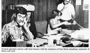He adds that "farmers shopping for new or used equipment really appreciate the convenience of calling toll-free, and having instant access and complete descriptions on hundreds of items," explains Mertz. "Operators taking the call have a complete description of each listing in front of them, which helps eliminate farmers making unnecessaryy calls to dealers. When the farmer calls in, the operator gives him the name of one or more dealers or sellers offering the particular make and model piece of machinery or equipment he wants to buy. The farmer then gets in touch with the selling party. Sometimes, our operators will spend up to a half hour or more helping a farmer who calls in," explains Mertz. "We can usually eliminate most of the "for sale" listings simply because. the farmer calling in isn't willing to drive more than several hundred miles from his farm to buy a particular piece of equipment. Ot