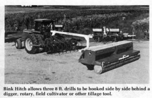 Equipment hitched directly to the rear of the tractor via the Bink Hitch "trails perfectly with no seesaw action," according to the manufacturer. '