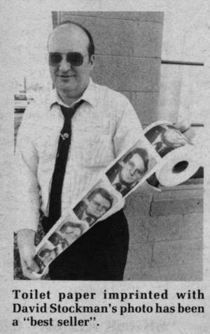 Besides custom-printed rolls, Carlberg sells stock rolls already imprinted with photos of David Stockman, John Block, Ronald Reagan or Chicago mayor Harold Washington. A stock roll sells for $4.95, plus postage.