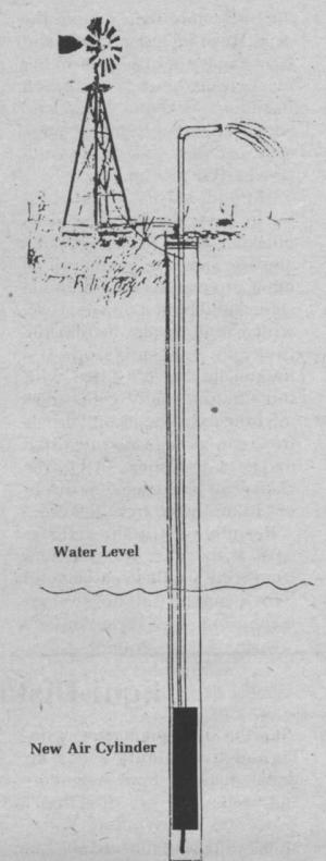 Colorado ranchers Kletis Kelly and Harold Stoddard, of Walsh, have designed an air cylinder for windmills that uses air to force water out of the well.