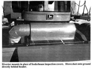 "My new feederhouse dust vacuum collects dust and discharges it right behind the header in front of the drive tires, away from the windows and cab. It tremendously improves operator vision," says Dave Eid, inventor.