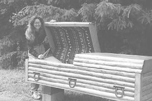 "It might seem a bit weird or morbid to some, but I really believe in what I'm doing. I do think there is a need for more variety in selection of caskets to allow people to better express the personal style they've developed over their lifetime," says Kramps. "We got the idea from an old-timer we knew who I'm sure would not have chosen to be buried in one of those regular caskets if he'd been given the opportunity. Lying there in all that satin simply doesn't suit certain people. This fellow was not that kind of guy - he lived off the land and spent his entire life in denim, not satin."