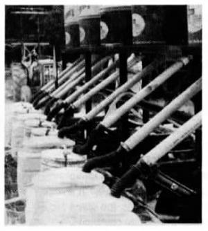 Anderson mounted the drums on a 2-ft. wide wooden catwalk that he built over the planter. A pair of 3-ft. long, 1 1/ 2-in. dia. pvc tubes run from the bottom of each drum to the row unit seed hoppers - one tube to each hopper. Seed drops by gravity through the tubes and into the hoppers as they empty out.