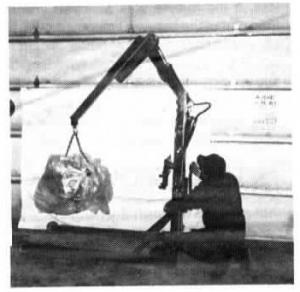 Hoist stand doubles as engine stand FARM SHOP Repairs 17-5-37 Our new hoist stand doubles as an engine stand to save space and time. Built from 4 by 6-in. steel tubing, the stand is equipped with extendable legs and an extendable telescoping lift arm on the mast. A pair of hydraulic cylinders, controlled by a hand pump and divider valve, are used to maneuver the mast, which is hinged at two points. You set the arm and legs in the extended position to lift the engine out of the vehicle and lower it onto the floor. Then shorten up the arm and legs, pick up the engine and mount it on a swivel bracket attached to the mast.