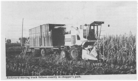 You'll like these "self-steer" forage hauling trucks that quick hitch to rear of forage harvesters and steer themselves around corners, exactly following the tracks of the harvester.