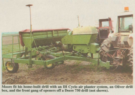 "I've used this setup for two years now and it has worked perfectly from the start. It's built so well most people think I bought another grain drill, says Moore. "Planting soybeans with two drills saves me a lot of time and money. I plant about 1,500 acres of soybeans and 400 to 500 acres of wheat. I spent little to build the drill and I can also use it as a 6-row corn planter."