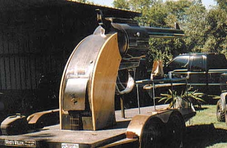 Being a Texan definitely had something to do with Joe Wood's decision to build a six-shooter the size of a pickup truck. The big handgun replica is actually a giant barbeque grill and smoker and it gets a lot of attention wherever it goes.