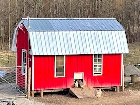 The neighbors weren’t sure what Nathan Hawkins was up to when he used his tractor and skid steer to drag, push and pull a cube truck box aged with moss and mold that had been abandoned behind the barn of his property. But they understood his vision after he remodeled it with reclaimed materials and bright red metal siding to create an attractive coop for 50 chickens.
