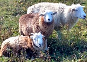 While born black-bodied, the fleece on purebred animals lightens with shearing to brown and finally a blue-gray. Bradt suggests that even a 50 percent Herdwick can be born with that breed’s coloring, no matter the foundation ewe.