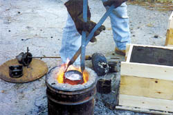 "It takes about 20 minutes to melt a pot of aluminum with charcoal," says Chastain.