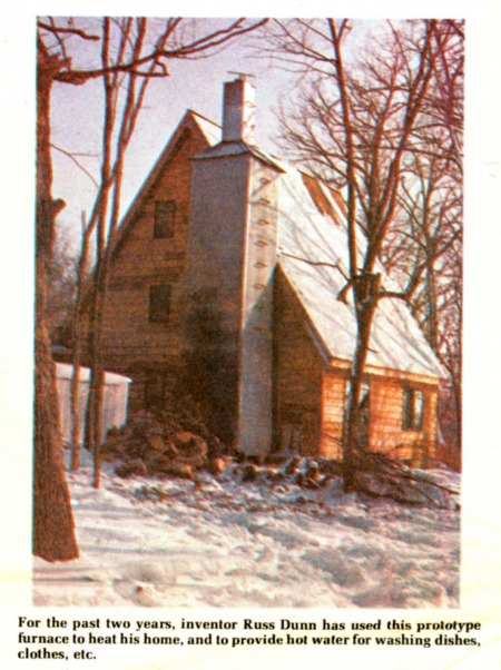Unlike virtually all other home heating systems, the revolutionary Dunn Furnace, named after its inventor Russ Dunn, Pierce County, Wis., goes outside rather than inside the home. Completely self-contained, it's heavily insulated and measures 5 ft. sq. and 12 ft. high, plus whatever length chimney stack is needed to extend above the roof of the home (or other farm building) being heated by the unit. Because it goes outside, it readily adapts to existing farm homes, livestock barns, workshops or whatever.