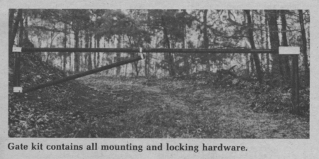 "The best way to maintain such property rights is to seal off access roads with a locked gate," according to the Tread Corporation, Roanoke, Virg. The company sells a security gate kit that'll establish rights to a particular access route and avoid the high cost of fencing. The gate kit can also be used around farmyards or anyplace else you need to lock up.